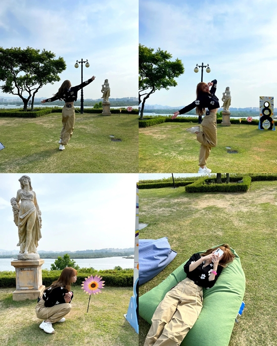 공개된 사진에는 잔디밭에 있는 이미주의 모습이 담겼다. 이미주는 여러 포즈로 특유의 발랄한 매력을 한껏 뽐냈다. 발랄함과 이미주는 마른 몸매로 시선을 끌었다. 잘록한 한줌 허리가 눈에 띄었다.