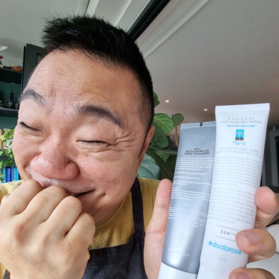 이어 "저 혼자서는 당연히 만들수 없겠죠. 콜라보로 제대로 된 화장품 한 번 만들어보자~! 라고 덤벼 봤어요. 온 가족이 편하게 쓸 수 있는 화장품이어야 해요. 민감한 피부도 걱정 없이 쓸 수 있는 화장품이어야 해요. 사용 방법이 어렵지 않은 화장품이어야 해요. 그래야 아빠나 아들들도 편하게 쓸 수 있을 것만 같았어요. 가격이 부담이 없는 화장품이어야만 해요 향도 강하지 않았으면 좋겠어요 등등 저의 모든 요구를 다 들어주신 스텝분들께 먼저 감사 드리고요"라며 화장품을 소개했다.