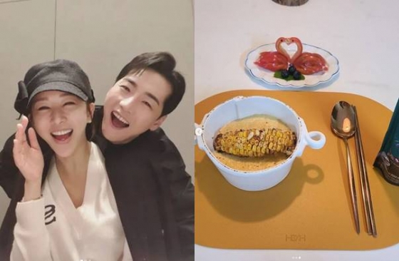 사진에는 박군이 한영을 위해 요리한 옥수수죽과 홍학 모양으로 자른 토마토가 식탁에 차려진 모습이 담겨 있었다.