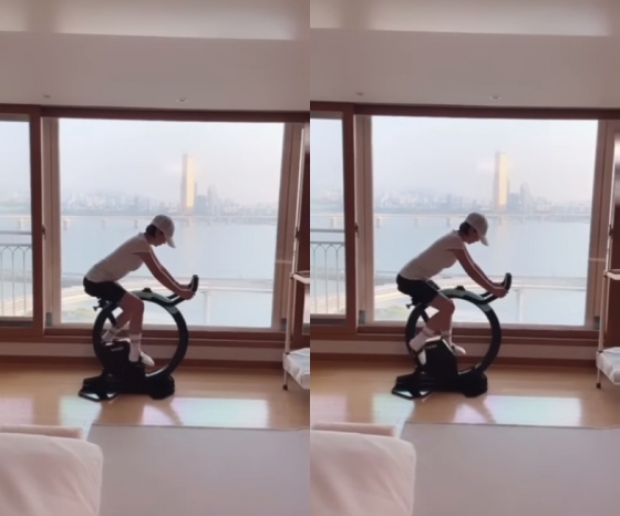 게재된 영상에는 실내 자전거를 타고 있는 황혜영의 모습이 담겨 있다. 커다란 창밖으로 한강과 다리, 63빌딩 등이 보이는 집에서 운동에 열중하고 있는 모습이다. 황혜영은 "맛있는 거 먹으려고 운동하는 인간형"이라고 덧붙였다.