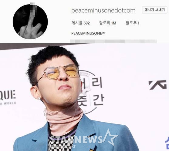 24일 지드래곤이 친누나 권다미와 함께 운영 중인 패션 브랜드 '피스마이너스원' 공식 인스타그램 계정 프로필 사진은 한 남성이 가운데 손가락을 들어올린 사진으로 바뀌어 올라왔다.