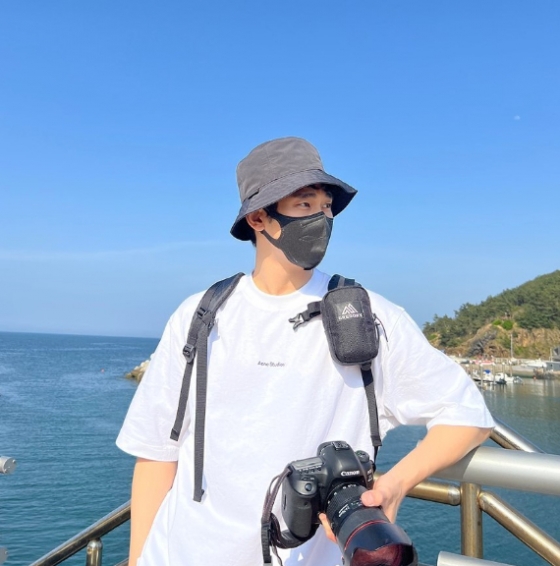 공개된 사진 속 김수현은 흰 티에 벙거지를 쓴 채 먼 곳을 응시하고 있다. 한 손에는 카메라를 들고 백팩을 맨 채 본격 출사를 나온 듯하다.