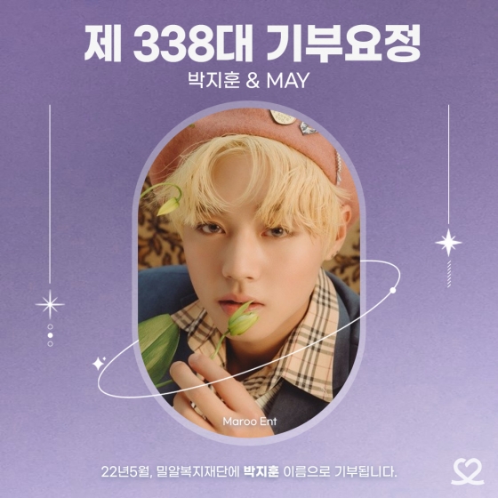 박지훈의 생일날 팬덤 메이(MAY)는 각 커뮤니티에 '#HAPPY_JIHOON_DAY', '#메이도_행복한_지훈데이' 해시태그와 함께 애정이 가득 담긴 응원 메시지를 이어가며 투표를 놓치지 않았다. 메이는 당일 '최애돌'과 '최애돌셀럽'에서 도합 1억 5천 표를 달성해 기부를 성공했다.