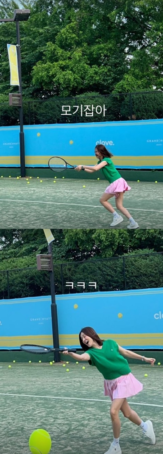 공개된 사진에는 '모기잡아', 'ㅋㅋㅋ'라는 문구가 담겼다. 사진 속 아이비는 테니스 라켓을 들고 개그감각을 마음껏 뽐냈다. 개그맨들도 무릎 꿇을 코믹 일상이다. 표정 역시 미모보다 웃음 유발하는 코믹 표정으로 팬들에게 웃음을 선사했다.