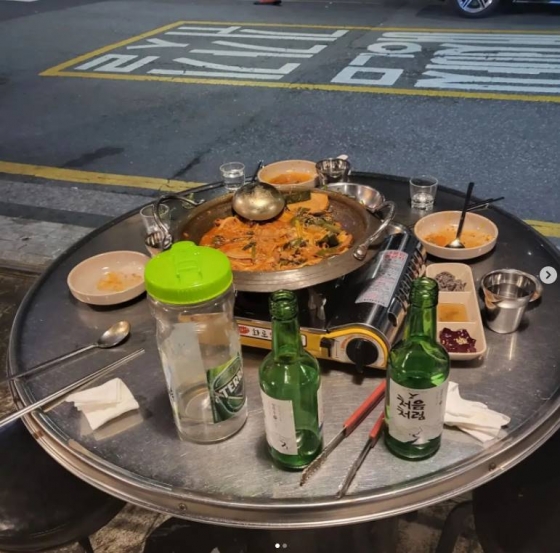 공개된 사진에는 정용국이 운영하는 곱창가게의 한 테이블에 식사 흔적만 남아있고 손님은 모두 떠난 광경이 담겨 있었다.
