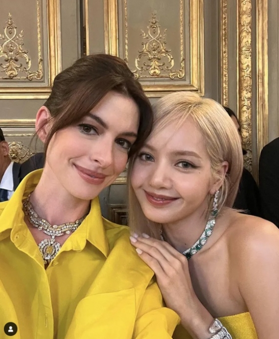 앤 해서웨이는 10일 자신의 인스타그램에 블랙핑크 리사와 함께 찍은 셀카를 게재했다. 앤 해서웨이는 별 다른 멘트 없이 하트 이모티콘과 함께 사진을 올리며 애정을 자랑했다.