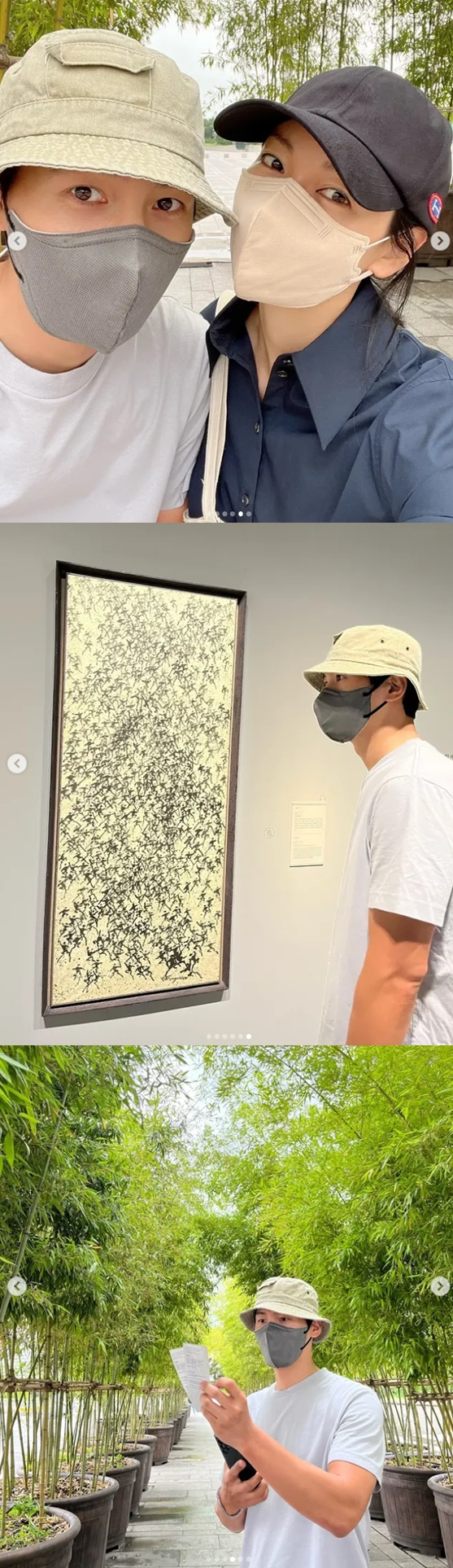 사진 속 이상우는 김소연과 함께 데이트를 즐기는 모습. 초록이 무성한 길을 걷고 함께 전시회를 즐기는 듯 하다.