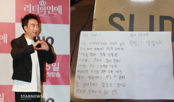 박명수는 15일 자신의 인스타그램을 통해 "조나단과 가비가 이렇게 선물을... 편지에 너무 감동을 받아. 조나단 가비야 내가 더 잘할게"라는 글과 함께 한 장의 사진을 올렸다.
