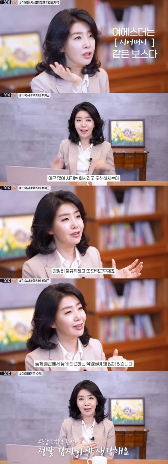 여에스더는 해명 영상에서 "나는 내 자식들이라 생각하고 '담배 피면 폐암 걸려'라고 하기도 하고, 직원의 머리카락도 막 만지고 이랬는데 내가 방송에서 내 모습을 보니까 '아 이거 좀 심하다'는 생각이 들었다. 직원이 나를 보고 '시어머니 같은 보스'라고 했을 때 완전 뜨끔했다"고 말했다.