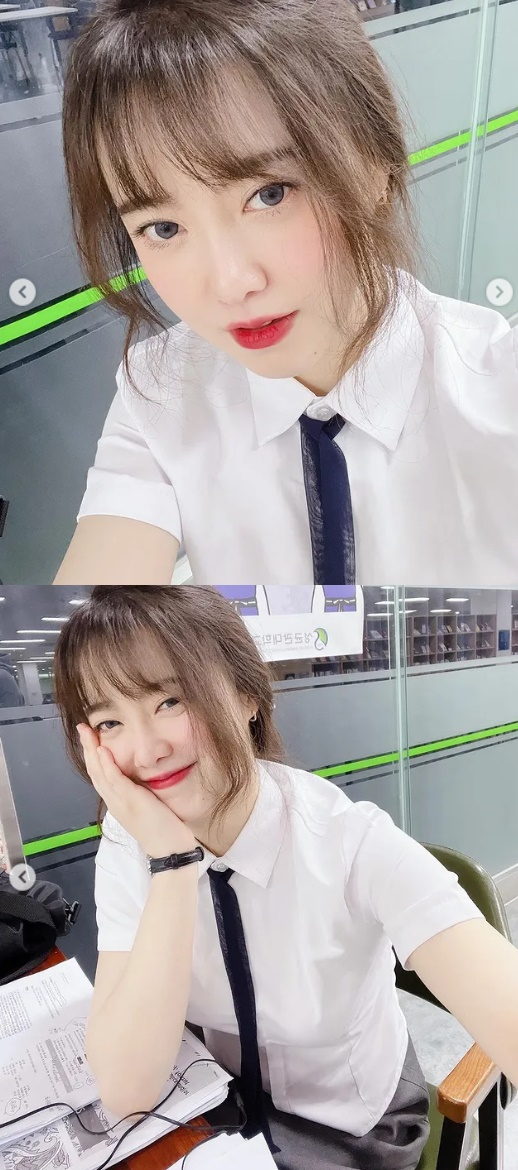구혜선은 20일 자신의 인스타그램에 "계절학기 수업중이여요. 학생복 차림으로 도서관에서 사부작 사부작"이라는 글과 사진을 게재했다.