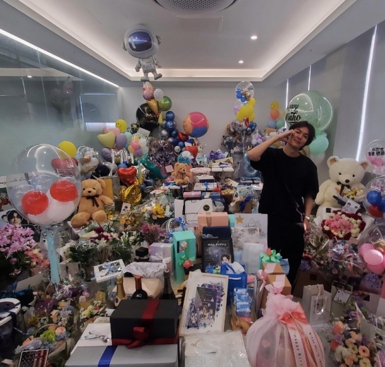 생일 케이크를 들고 어린아이처럼 행복하게 웃고 있는 자신의 사진을 비롯해 미노즈가 선물한 꽃, 인형 등 생일 선물을 인증하며 팬들에게 감사를 전했다.