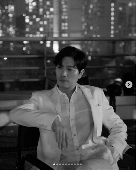 박희순은 23일 자신의 인스타그램을 통해 흰색 정장을 완벽하게 소화하는 모습을 보였다. 사진 속 박희순은 흑색배경에 화려한 건물을 등지고 앉아 주머니에 손을 넣는 등 시크한 매력을 발산했다.