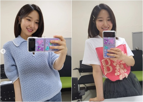 공개 된 사진 속 이혜성은 거울 속 자신의 모습을 촬영하고 있다. 각각 다른 스타일의 의상을 입은 이혜성은 러블리한 매력을 뽐내고 있다.