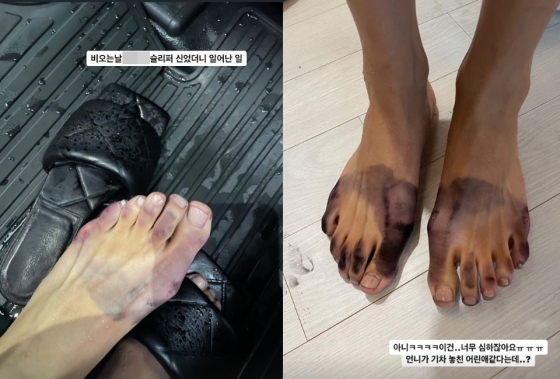 이가흔은 1일 자신의 인스타그램 스토리를 통해 "비 오는 날 슬리퍼 신으면 생기는 일"이라고 말문을 열었다.