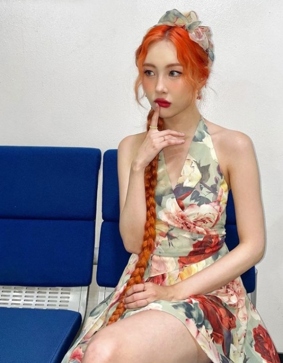 공개된 사진 속에는 선미가 오렌지 톤의 헤어와 메이크업을 한 채 화사한 꽃무늬 원피스를 입은 모습이 담겼다. 오렌지톤 의상과 헤어스타일에 과일 같은 상큼함을 뽐내 시선을 끌었다.