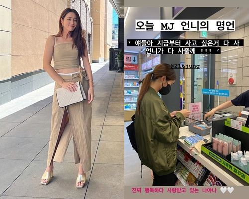 사진 속에는 드럭스토어에서 계산을 하고 있는 이민정의 모습이 담겨있다. 이민정의 지인은 "오늘 MJ 언니명언. '얘들아 지금부터 사고 싶은거 다 사. 언니가 다 사줄게!"라고 전했다.