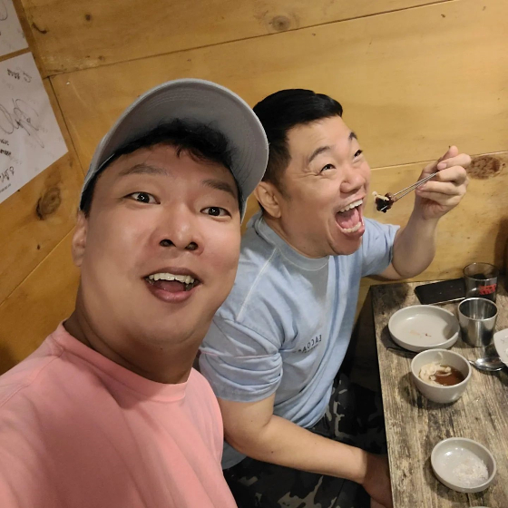 또한 박준형은 "술 한잔 없는 회식. ㅎㅎ. 꽃살사이의 마블링에서 그대의 얼굴이 떠올랐소. 옥춘이. 흥춘이. 오춘이. 옥주부. 박휘순대볶음. 오지헌책방집. 갈갈이패밀리. ㅎㅎㅎ"라는 글을 더해 웃음을 자아냈다.