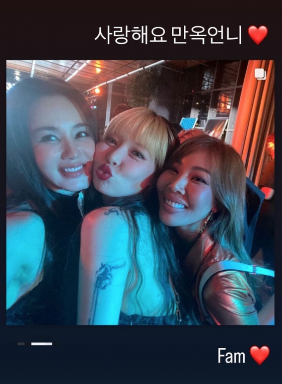 이외에도 제시는 엄정화 현아와도 함께 사진을 찍으며 "사랑해요 만옥 언니"라고도 적었다.