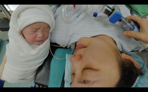 공개된 사진에는 아기를 출산한 곽지영의 모습이 담겨있다. 곽지영은 갓 태어난 아기를 사랑스러운 눈빛으로 바라보고 있다.