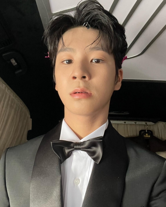 정동원은 수트에 나비넥타이를 하고 의젓한 모습을 보여줬다. 16세인 그는 최근에도 키가 훌쩍 큰 자태를 보였다.