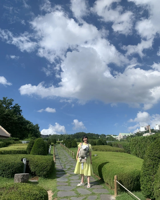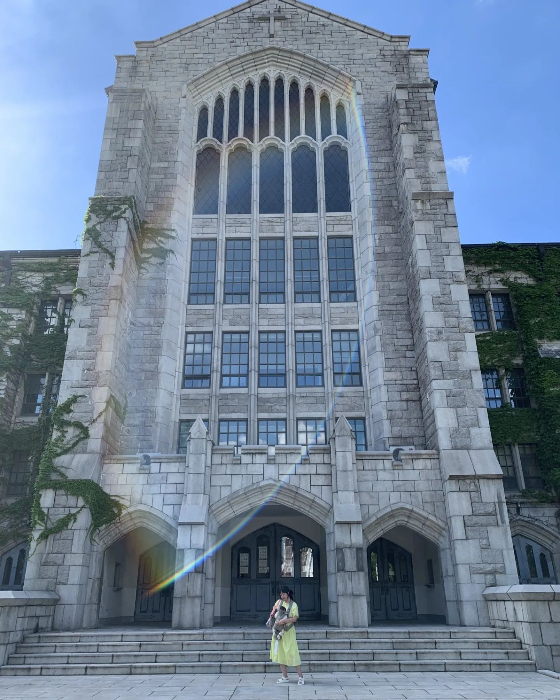 정주리는 18일 자신의 인스타그램에 "하늘도 이쁘고 학교도 이쁘고. 여긴 우리 네아들 아무리 공부 잘해도 못가는. 이화여대"라는 글과 세 장의 사진을 게재했다.