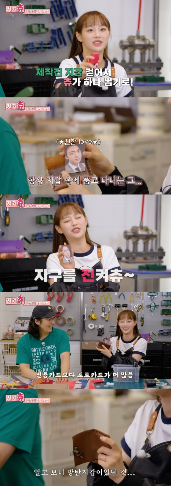 츄는 "지구를 진켜츄"라고 너스레를 떨기도 하고 신용카드보다 진의 포토카드가 더 많은 지갑이라고 언급하며 미소를 지었다.