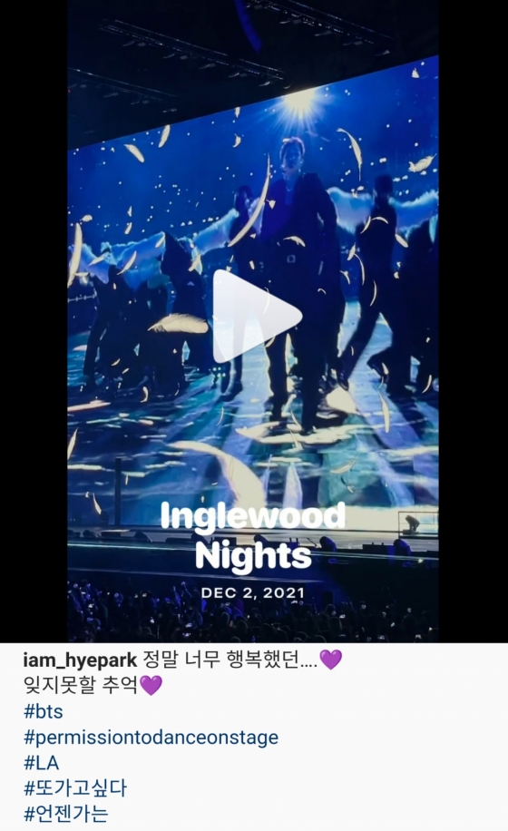 최근에도 혜박은 인스타그램에 #bts #permissiontodanceonstage #또가고싶다 #언젠가는 등의 해시태그와 함께 '정말 너무 행복했던…. 잊지못할 추억'이라는 글과 LA 콘서트의 영상을 남겼다.