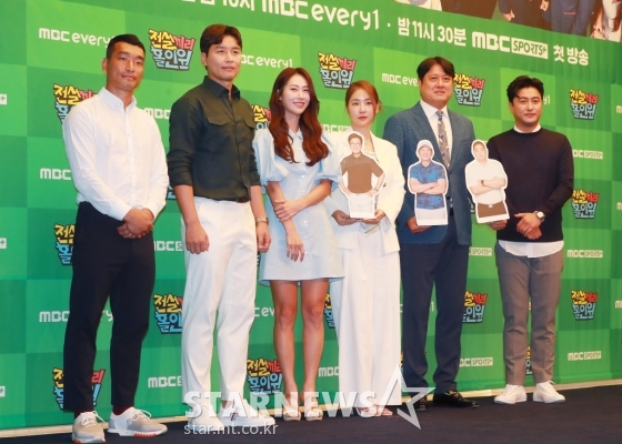 연예방송'전설끼리 홀인원 주역들'[★포토]발행 : 2022.07.19 ・ 11:44이동훈 기자조원희, 이동국, 김하늘, 소유, 문경은, 안정환이 19일 오전 서울 상암동 스탠포드 호텔에서 진행된 MBC에브리원 예능 '전설끼리 홀인원' 제작발표회에 참석해 포즈를 취하고 있다.축구와 농구 레전드 스타들이 펼치는 골프 대결을 통해 스포츠의 짜릿함과 예능의 유쾌함을 동시에 만끽할 수 있는 프로그램 '전설끼리 홀인원'은 오늘(19일) 첫 방송된다. /2022.07.19<저작권자 © 스타뉴스, 무단전재 및 재배포 금지>전설끼리홀인원추천 기사이동훈 기자기자홈좋아요 연예-방송의 인기 급상승 뉴스연예-방송의 최신 뉴스