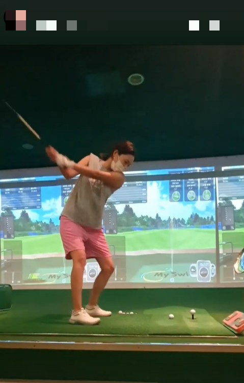 김지혜는 19일 자신의 인스타그램 스토리를 통해 골프 스윙 연습 영상을 공개했다.