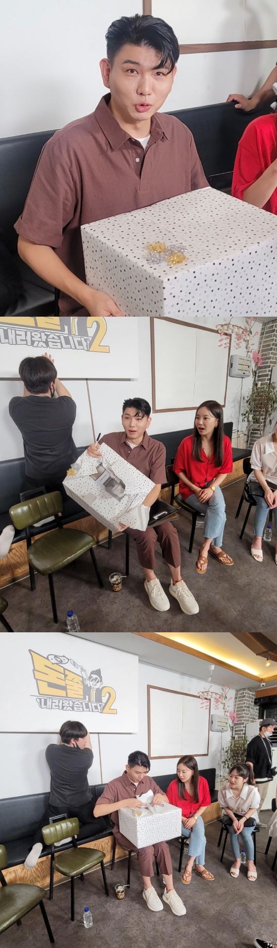 공개된 사진 속에는 '돈쭐내러 왔습니다 시즌2' 제작진에게 분유제조기를 선물받고 감동받은 듯한 표정의 제이쓴의 모습이 담겨있다.