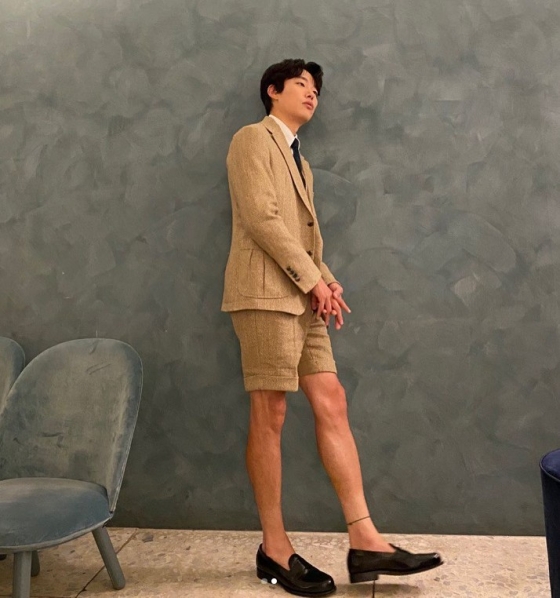 공개된 사진에는 류준열이 브라운 계열의 슈트를 입고 벽에 기댄 모습이 담겼다. 반바지를 입고 드러낸 발목에 검정 액세서리를 착용해 트렌디함이 돋보이게 했다.