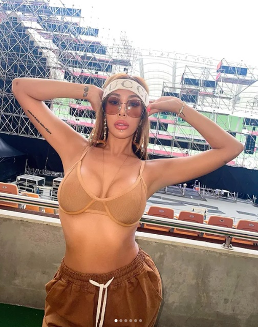 제시는 23일 자신의 인스타그램에 공연 준비 중인 사진을 게재했다. 공개 된 사진 속 제시는 스킨톤과 비슷한 컬러의 브라 톱에 트레이닝 팬츠를 매치한 의상을 선보이고 있다. 제시는 착시 의상으로 글래머 몸매를 더욱 강조하고 있다.