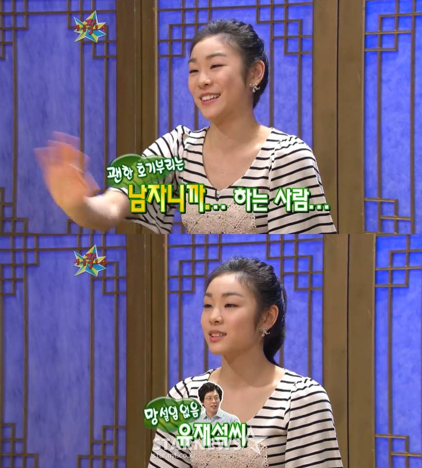 김연아는 그해 MBC 예능프로그램 '황금어장-무릎팍도사'에 게스트로 출연해 "저는 이상형이 없다"면서도 내 남자친구는 이것만은 안 된다는 게 뭐냐는 질문에 "센 척하는 남자, 뭐든 '남자니까'라고 하는 사람은 안 좋아한다. 수다스러운 사람도 안 좋아한다"고 말했다. 유재석과 강호동 중에 자신의 취향을 꼽아달란 요청에는 "유재석"이라고 했다.