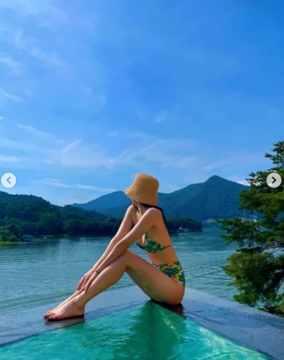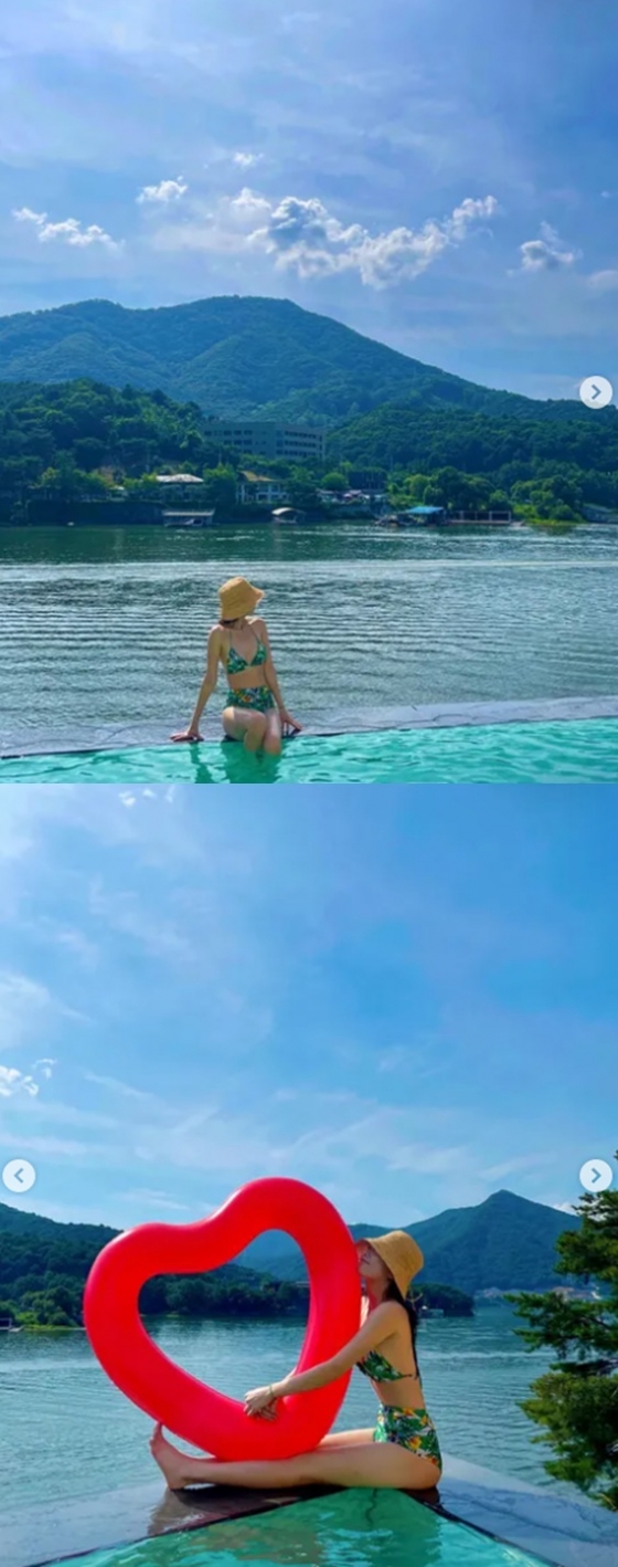 강지영은 27일 자신의 인스타그램에 수영장에서 찍은 사진을 게재했다.