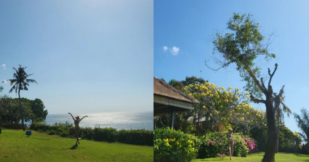 모델 한혜진이 발리에서 비키니를 입고 사진을 찍었다.