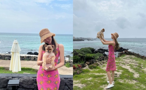 공개된 사진에는 이다해가 바닷가에서 핑크색 원피스를 입고 반려견을 안고 있는 모습이 담겼다. 반려견과 똑 닮은 사랑스러운 분위기에 시선을 끌었다.