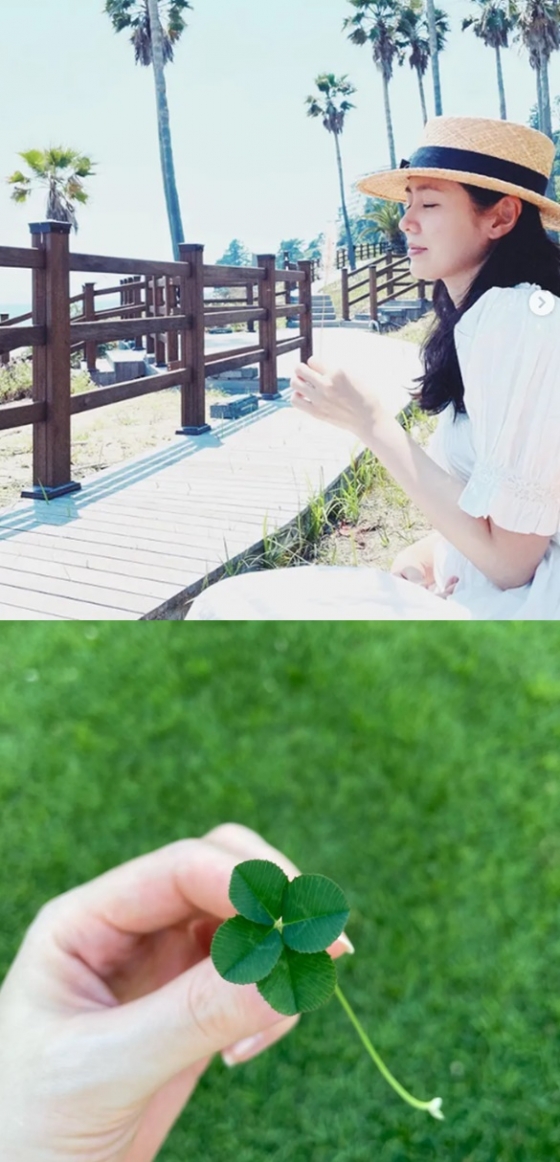 손예진은 2일 자신의 인스타그램에 "행운 가득한 날들 되시길"이라는 글과 사진을 공개했다. 손예진은 푸른 풀밭에서 찾은 듯한 행운의 네잎클로버 사진을 올려 눈길을 모았다.