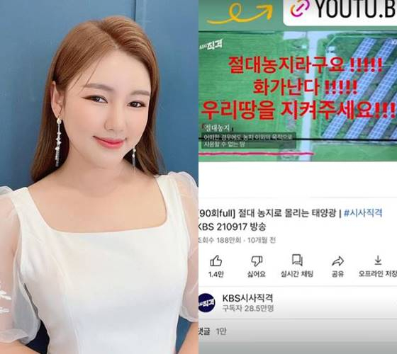 캡처에는 유튜브 채널 KBS시사직격에 올라온 KBS 2TV '시사직격'의 '절대농지로 몰리는 태양광'이란 주제의 2021년 9월 방송 장면이 담겨 있었다.