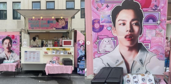 공개된 사진에는 여진구의 사진으로 도배된 핑크색 커피차 사진이 담겼다. 커피차에는 '시간 넘어 용이를 만나러 왔어요'라는 문구가 적혀있다. 여진구는 '동감', '김용', '9oo그램'을 태그하며 팬들에 대한 고마운 마음을 전했다.