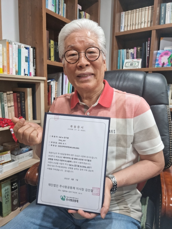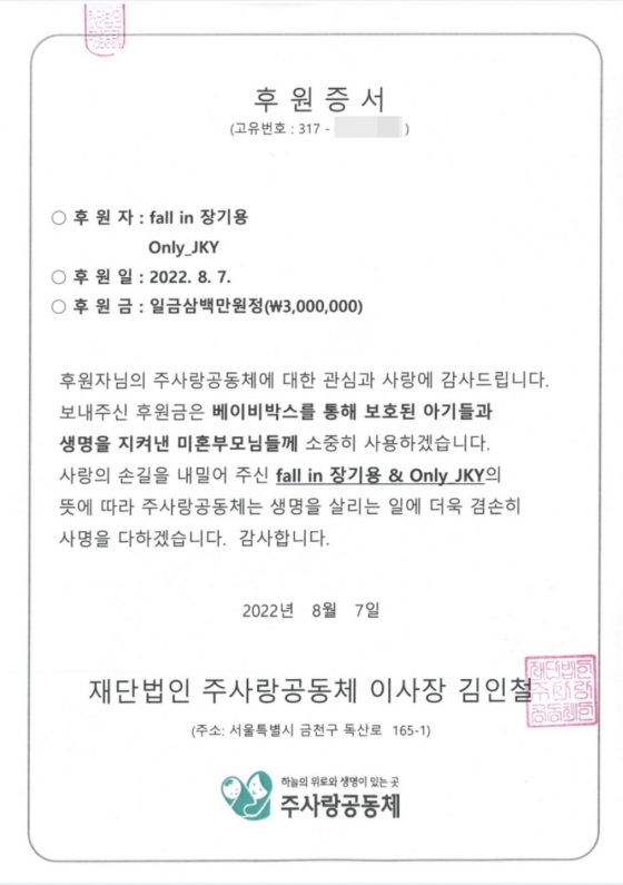 주사랑공동체는 "베이비박스를 통해 보호된 아기들과 생명을 지켜낸 미혼부모들을 위해 소중히 사용하겠다"고 감사를 전했다.