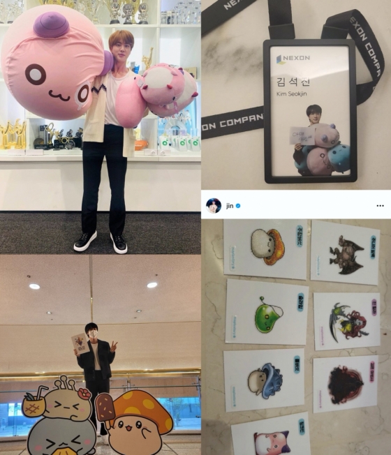 진은 메이플 스토리의 오랜 유저로 꾸준히 애정을 드러내 왔으며 게임 캐릭터뿐만 아니라 '심포니 오브 메이플 스토리' 음악회, '메이플 빵' 등 모든 부분에 관심을 가져왔다.