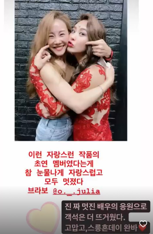 이에 옥주현은 "진짜 멋진 배우의 응원으로 객석은 더 뜨거웠다. 고맙고 사랑한다"라고 전했다.