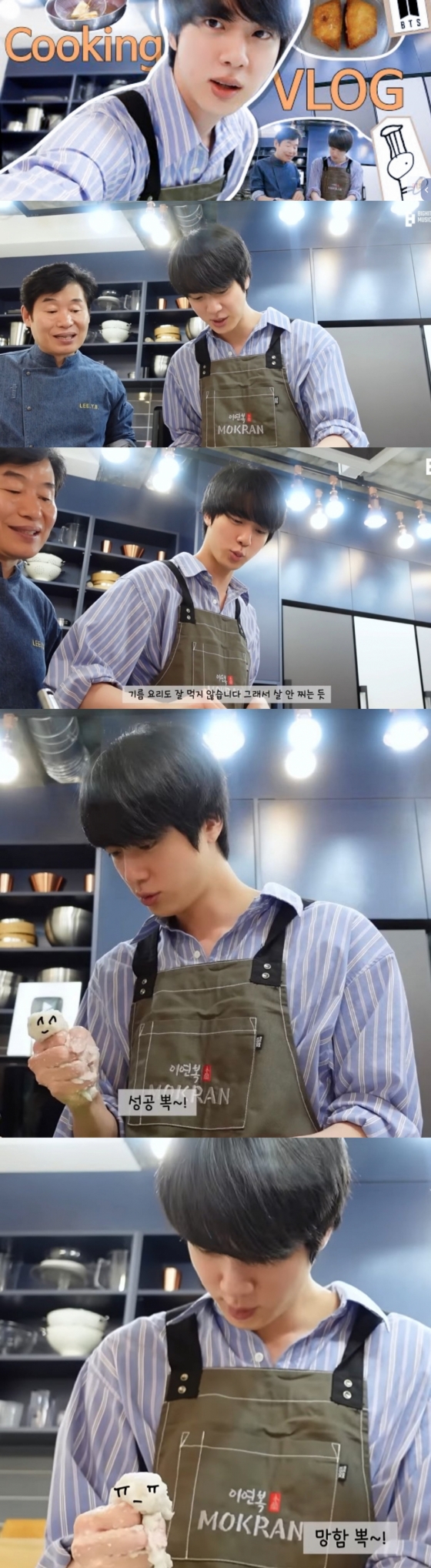 진은 지난 8월 13일 방탄소년단 유튜브 채널 'BANGTAN TV'를 통해 '#요리는역시손맛', '#요리태웠을때_꿀팁', '#멘보샤랑한쫜해' 등의 해시태그와 함께 "[BTS VLOG] Jin l COOKING VLOG" 영상을 공개했다.