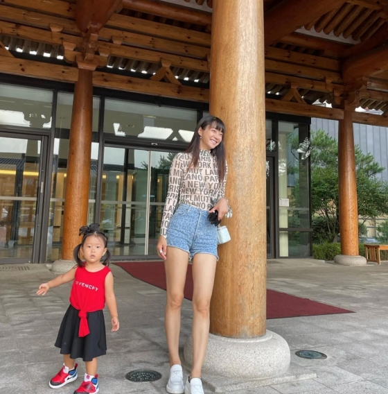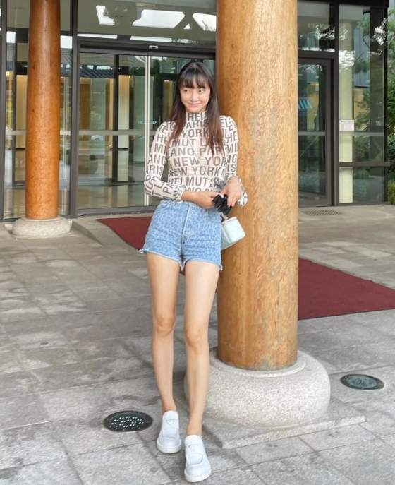 사진에서 서효림은 파격적인 스타일의 핫팬츠와 몸매가 드러나는 밀착 티셔츠로 포즈를 취하고 있다.