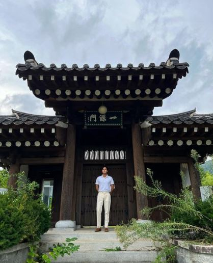 공개된 사진 속 최시원은 옥산재 일원문 앞에서 전신사진을 찍어 황금 비율을 자랑했다. 최시원은 하늘색 반팔 티와 베이지색 바지를 입고 뒷짐을 지었다.
