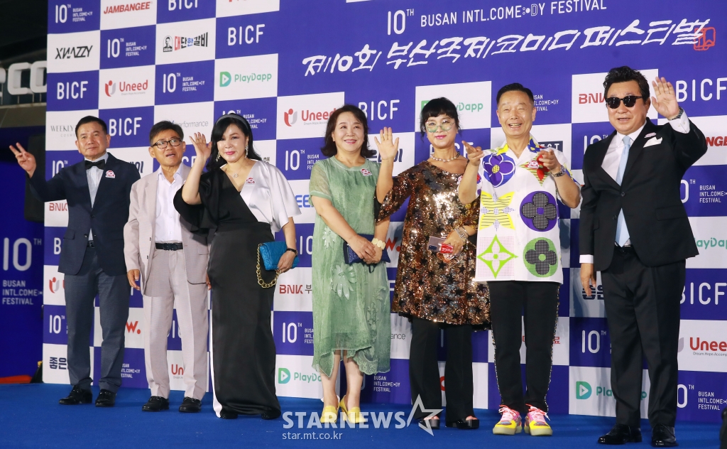 연예방송'코미디 어르신들'[★포토]발행 : 2022.08.19 ・ 19:39이동훈 기자코미디언 이용근, 엄영수, 이선민, 지영옥, 김학래, 임하룡 등이 19일 오후 부산 해운대구 영화의 전당에서 진행된 제10회 부산국제코미디페스티벌(BICF) 개막식에 참석해 포즈를 취하고 있다. 제10회 부산국제코미디페스티벌은 오늘(19일) 시작해 28일(일)까지 총10일간 진행된다. /2022.08.19<저작권자 © 스타뉴스, 무단전재 및 재배포 금지>부코페추천 기사이동훈 기자기자홈좋아요 연예-방송의 인기 급상승 뉴스연예-방송의 최신 뉴스