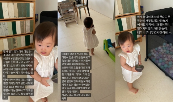 그는 "밤새 불덩이 돌보며 한숨도 못 잤는데 거짓말처럼 새벽 6시에 해열제 먹이니까 열이 뚝 떨어지며 활기차진 윤슬이. 너무 감사한 아침"이라며 뛰어노는 아이의 사진을 공개해 안도감을 자아냈다.