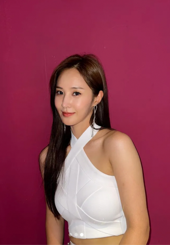 공개된 사진 속 유리는 흰색 홀터넥 상의와 화려한 치마를 입고 카메라를 응시하고 있다. 유리의 탄탄한 몸매와 특유의 탄력 넘치는 피부가 섹시미를 발산했다.