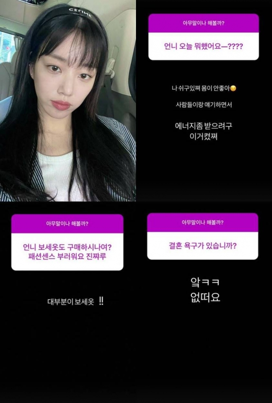 이유비는 21일 인스타그램 스토리에 팬들과 Q&A 답변을 한 내용을 공개했다.