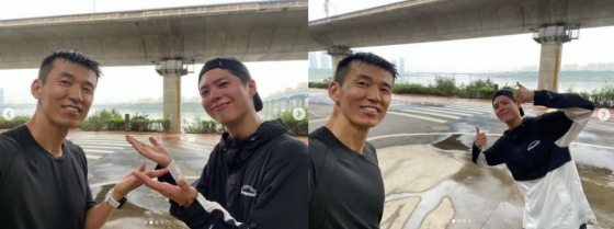 그룹 지누션의 션이 배우 박보검과 우중 러닝을 뛰었다.